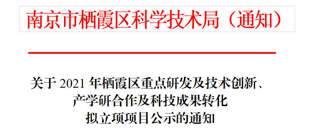 我司成功申報2021年棲霞區科技成果轉化項目