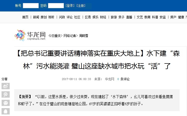 ?璧山有片“水下森林”讓水能“呼吸”更清澈