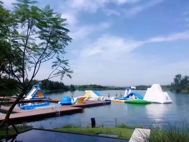 夏天的時候開發(fā)商會開放部分水域,孩子們穿上救生衣就可以在湖里游泳或者玩各種水上活動。