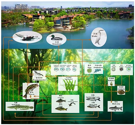 目前國內(nèi)單體面積最大,由丘陵生態(tài)系統(tǒng)轉(zhuǎn)變的人工湖,沿著原生淺丘地形的肌理,【中科院南京地理與湖泊研究所】聯(lián)合【南京中科水治理股份有限公司】,在麓湖構(gòu)建了一個水域可持續(xù)生態(tài)系統(tǒng)-清水型生態(tài)系統(tǒng):通過放養(yǎng)一定數(shù)量、不同種類、一定比例配置的水生動物,種植不同種類、不同生長季節(jié)、不同花期、不同生態(tài)類別的水生植物,形成一個健康有效的生物網(wǎng),實現(xiàn)湖水的自我生態(tài)凈化。
