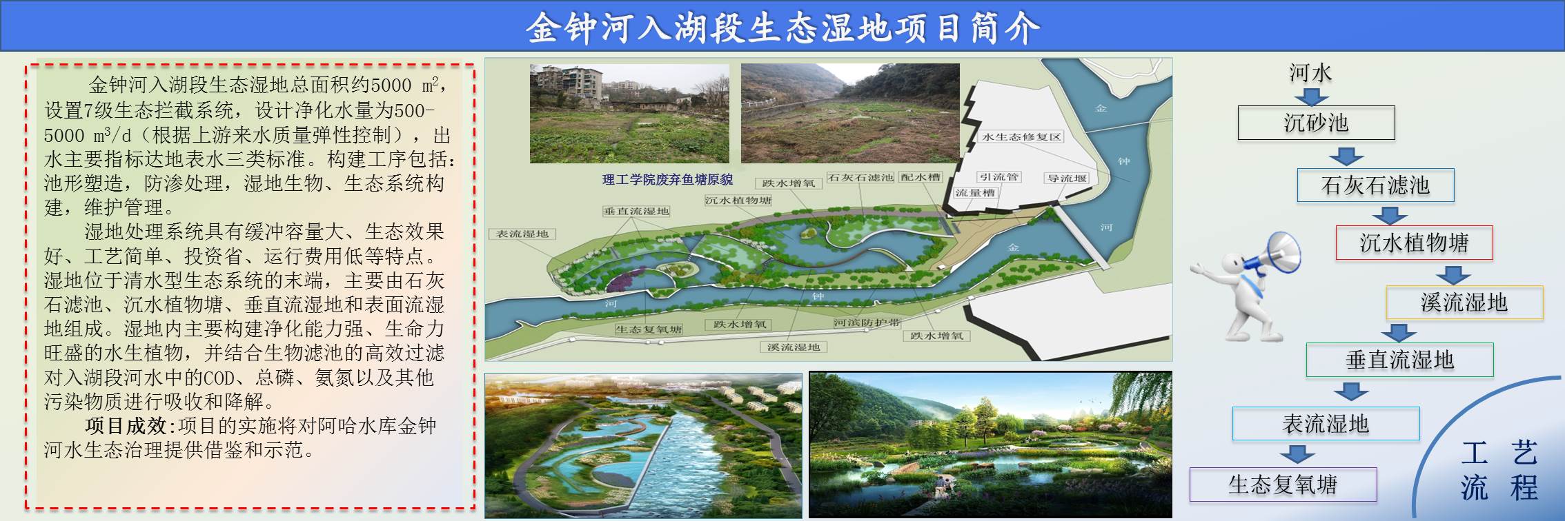 中科水治理此次為對阿哈水庫入湖段—金鐘河末端進行生態治理,通過清水型生態系統的構建、生態濕地的打造,提升河流的自凈能力,守住阿哈水庫入湖段最后1公里防線。