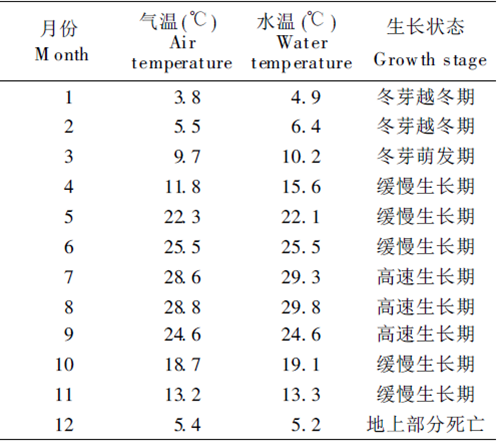 苦草是多年生草本。分布在亞熱帶地區(qū)的苦草( V. natans )冬季地上部分死亡,以冬芽或種子越冬,春季從冬芽或種子開始萌發(fā),且隨氣溫上升開始緩慢生長,夏季為快速生長期,最大生物量一般在9月份出現(xiàn)。開花期是5~ 8月,結果期為8~10月,種子成熟期在12月左右。