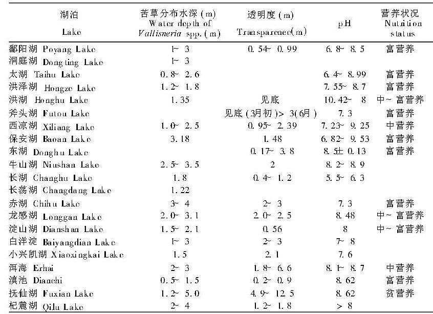 苦草分布湖泊的水質狀況